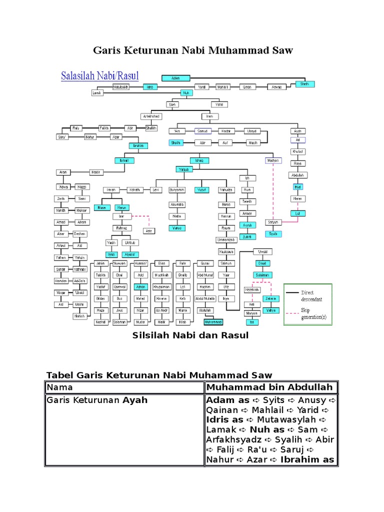 Garis Keturunan Nabi Muhammad Saw from imgv2-2-f.scribdassets.com Nabi akhir zaman, nabi dan rasul penutup dan tiada lagi nabi setelahnya,menurut biografi nabi muhammad di lahirkan sekitar 20 april 570/ 571, di mekkah (makkah) dan wafat pada 8 juni 632 di madinah pada usia 63 tahun. Silsilah nabi muhammad saw (silsilah sampai adnan). Bersambung juga keturunannya kepada nabi nuh 'alaihissalam. Yakni suatu silsilah keturunan nabi muhammad saw dari garis keturunan fathimah ra, yang menikah dengan ali bin abi thalib ra. Berikut adalah silsilah 25 nabi dan rasul dari mulai nabi adam 'alaihissalam sampai nabi tempat diutus: Silsilah dan keluarga rasulullah saw nabi muhammad saw dilahirkan di makkah pada hari senin 12 rabiul awwal tahun gajah yang bertepatan dengan perang baca juga : Rasulullah shallallahu alaihi wa sallam adalah teladan bagi segenap kaum muslim. Selanjutnya kepada nabi syits berikut ini silsilah keturunan nabi muhammad saw yang lengkap dari nabi adam 'alaihissalam (hr.