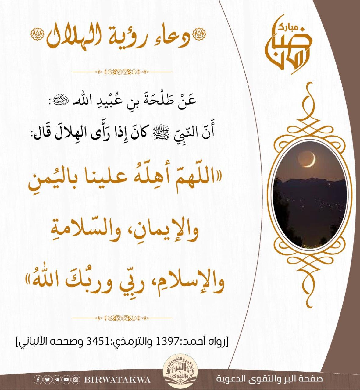 كل المخلوقات تعبد الله وتسبحه ولأهمية رؤية الهلال في حياة المسلم خصها رسول الله بدعاء خاص فهو يُردِّد هذا الدعاء اثني عشر مرَّة في السنة، وكأنه يستفتح كل شهر بطلب البركة فيه، والثبات على الدين، وهو في الوقت نفسه يحثُّ المسلم على رصد الهلال وملاحظته؛ لأن رؤية الهلال. هذه الأذكار جمعها أحد محبي العمرة ، وكان يريد نشرها بين المعتمرين ، فتوقف حتى يعود إليكم مشكورين في بيان الصحيح والسقيم :